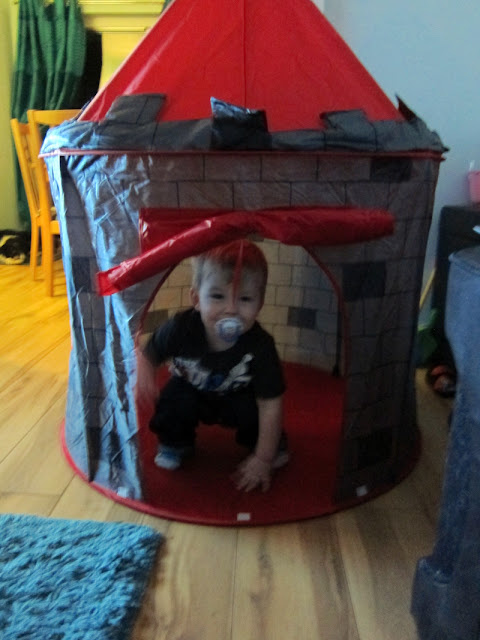 Pic.No.26 I bought my lovely little nephew, Mitch, a bloody huge castle play tent for comedy value. Because I knew it would take up most of the living room. It's retribution for the time someone once bought Izzy a set of drums
