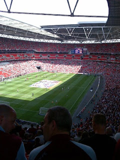 Phil, who had spent the week saying that I should give his ticket away as he would 'not enjoy the day because he hates football' and although it was a very nice gesture from my mum it would be wasted on him, was awestruck when we came through the stadium tunnels into the 80, 000 strong crowd. The tamed down translation of his exact words were: It was pretty spectacular, the stadium had been divided across the middle into Burnley fans and Sheffield fans all singing as loud as they could at each other…poor Phil who has never been to a football match got very frustrated trying to learn the words to all the chants as ‘they go to fast for me to hear them’. He managed to get the hang of ‘who are you’ by the end of the match though. Well done that man.