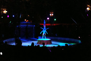 We made our way into the Big Top itself, which was dark and warm with an auditorium surrounding a smallish circular arena where the performers worked.