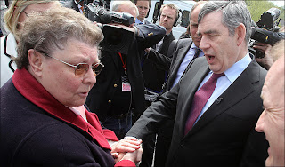 Oh yeh, once in the car, Gordon forgot that he still had a TV microphone attached to his lapel, and proceeded to launch a scathing attack on the 'bigoted' voter Gillian, going on to describe the visit as a 'a disaster'. TV and Radio stations managed to record the lot. Oh dear.
