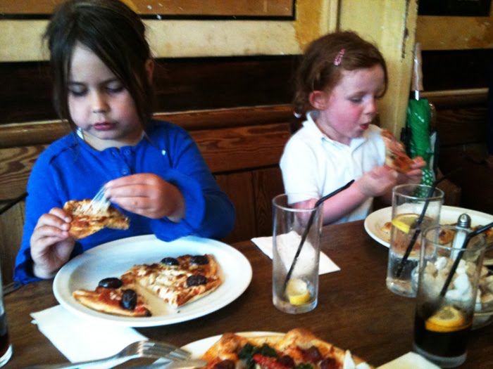 Pic.No.7. The lovely Honey and Izzy scoffing pizza