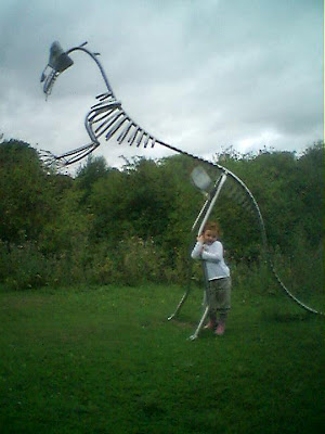 Pic.No.2. This is Dennis the dinosaur. We stumbled upon him on our bug hunt. He's not real..... obviously ..... because he's extinct .... and made of metal