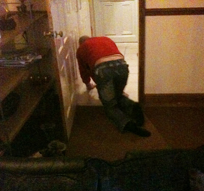 "You are like the witches of Eastwick, except there are only two of you," Sicknote said before adding, "I'll just do it myself then." He dropped to the floor on all fours and crawled, groaning, towards the kitchen like a man in the desert who has just spotted a morsel of food. You think I am in jest? Aha.... no flies on me..... I got it all on camera.