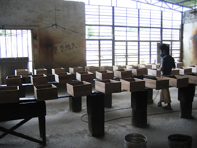 But hey! I was saved, and it was with a spring in my step that I commenced my tour of the boss's factory. In case you were wondering what it looks like inside a Chinese furniture factory, I took a picture for you......