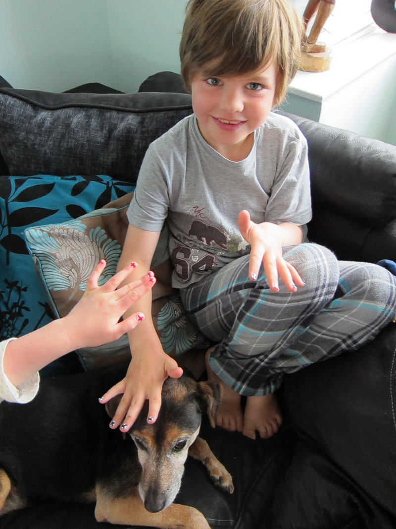 Pic.No.4 Izzy and Sprog A seem to be taking a leaf from my book, and found the path of least resistance whilst visiting one of the gardens. Don't do that - you'll get lardy!