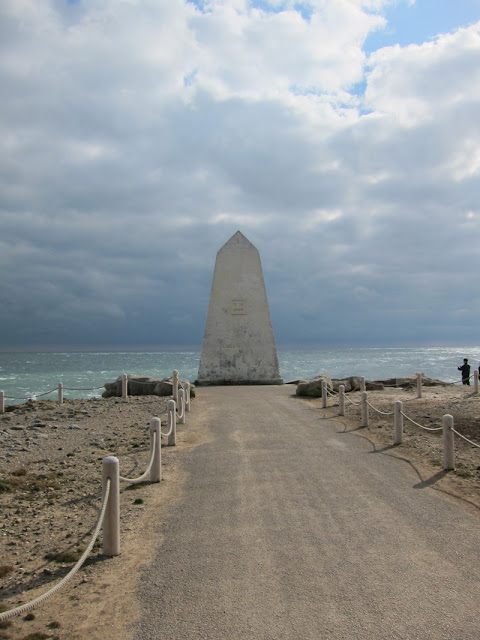Pic.No.23 A big pointy stone thing was situated just behind the lighthouse. I think that they are called obelisks or something like that. You can tell how big it was by looking at the size of the chap on the right hand side of the picture